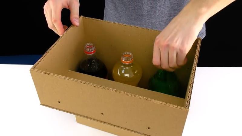 段ボールをホットボンドで接着し、3本のボトルが入る大きさの箱を作ります。