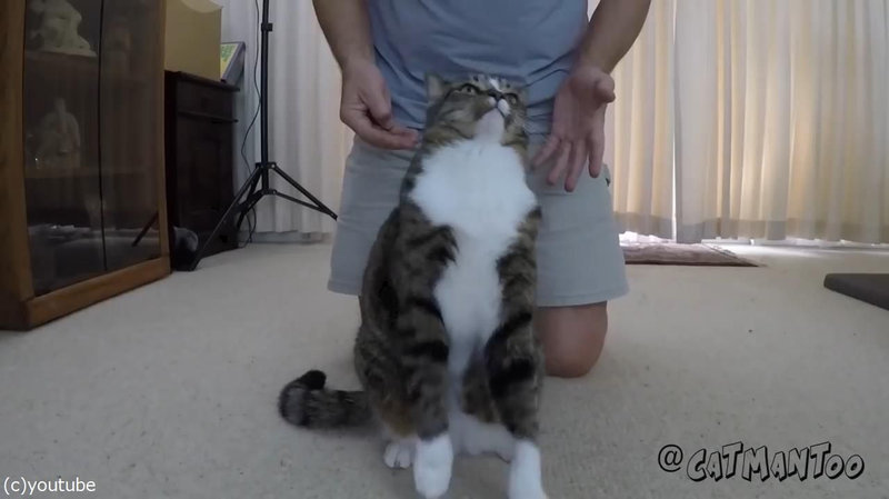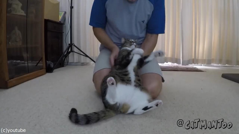 この猫、飼い主への信頼がすごい…背中から後ろに倒れる(動画)