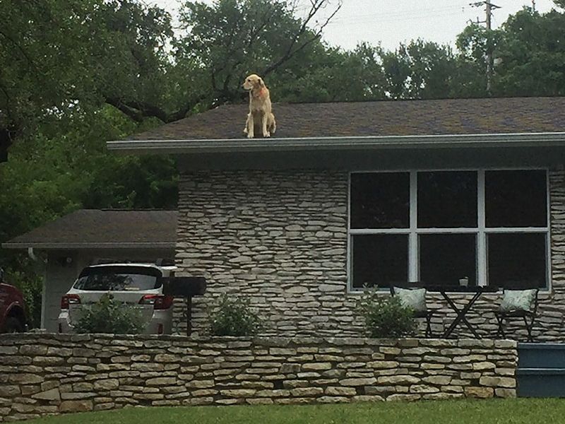 「屋根の上に犬がいるけど驚かないで…心配いりません」テキサス州のほのぼのした光景