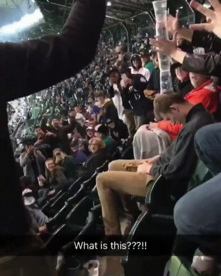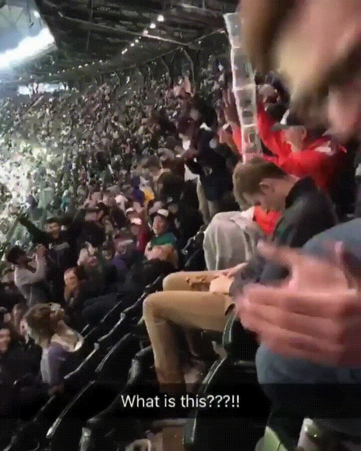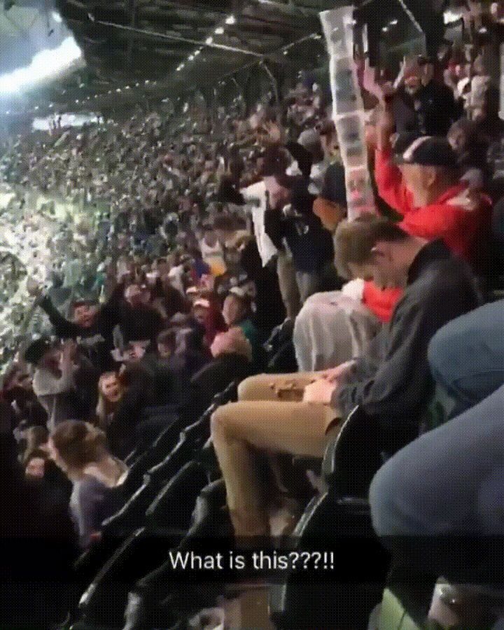 スタジアムでは試合以外にも、興奮するイベントが起きているようです。