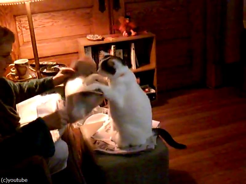 飼い主さんの気を引こうと、何度もちょっかいを出します。