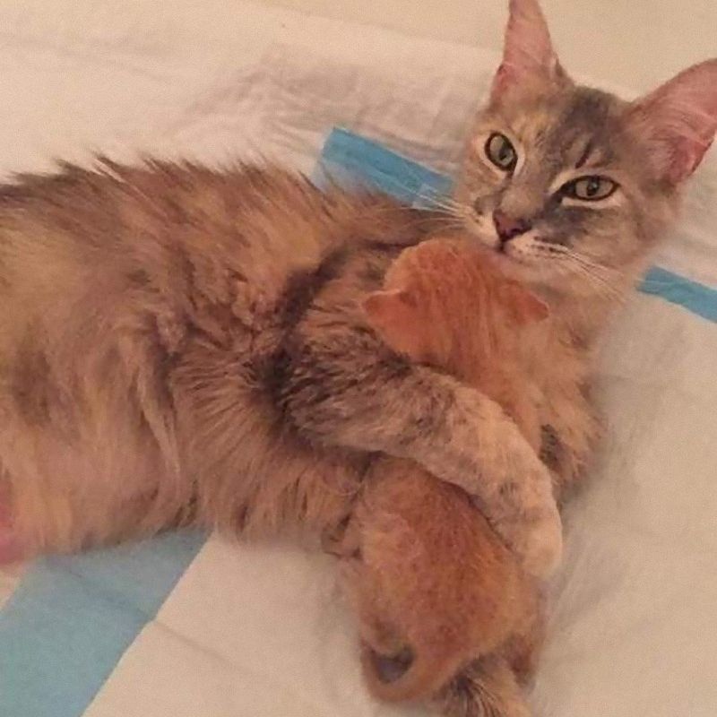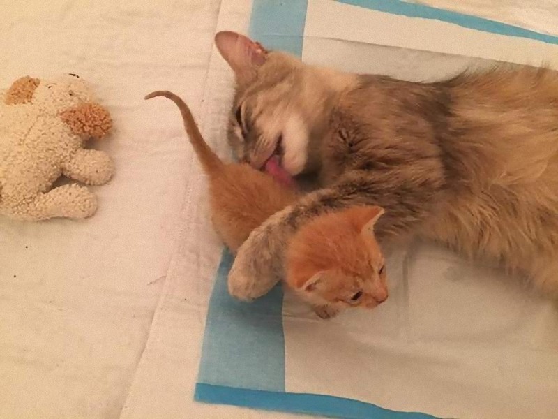 Mother Cat Lost All Her Kittens, Then This Orphan Newborn Showed Up