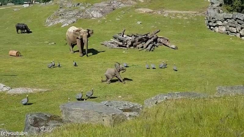 赤ちゃんゾウ…遊びに夢中で転んでしまう「マ、ママー!」(動画)