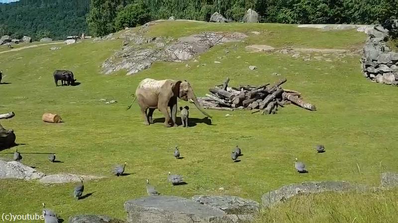 転ぶ前からさりげなく子どもを気にかけているお母さんゾウに、深い愛情を感じます。