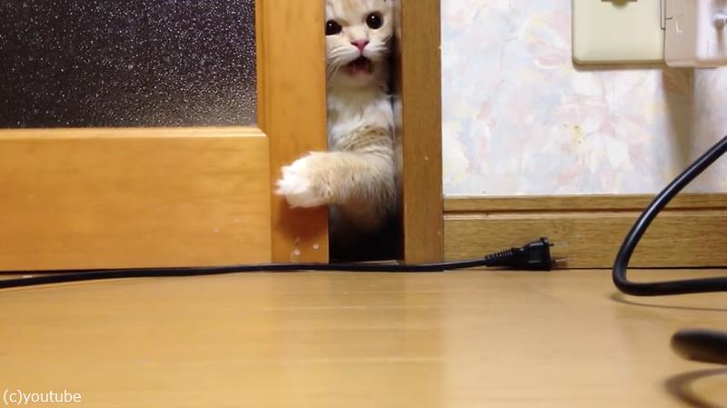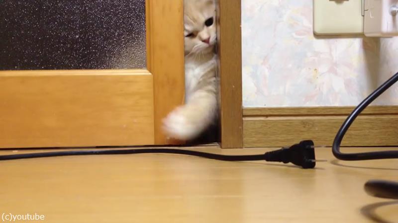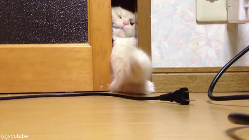 猫「と…届かないっ」ドアのすき間から足を伸ばす(動画)