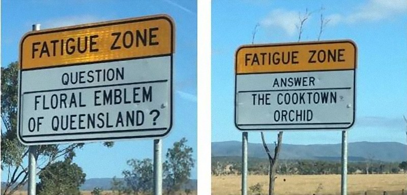 広大なオーストラリアの道路は退屈すぎるので…居眠り防止のクイズ看板が設置されている