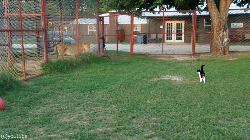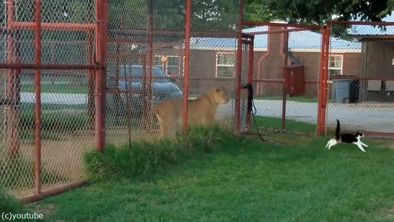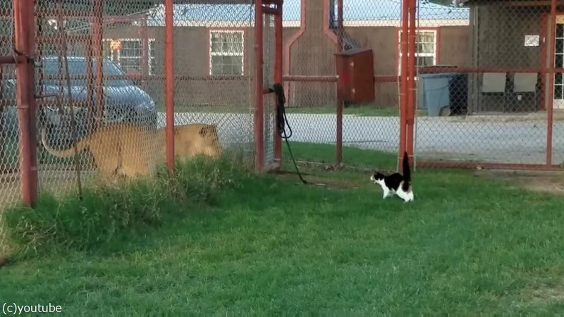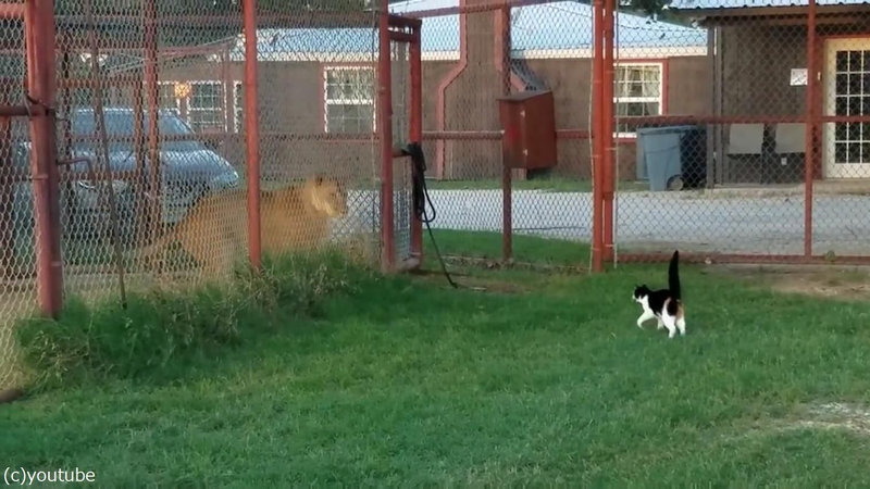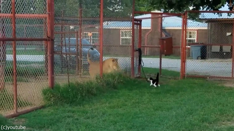 強気のメス猫をライオンの前に連れて行ったら…「挑発してるっ!?」(動画)