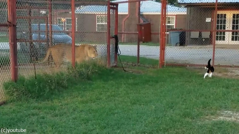 散歩がてらライオンの柵の前まで連れて行ったところ……なんとケンカを売り始めたそうです。