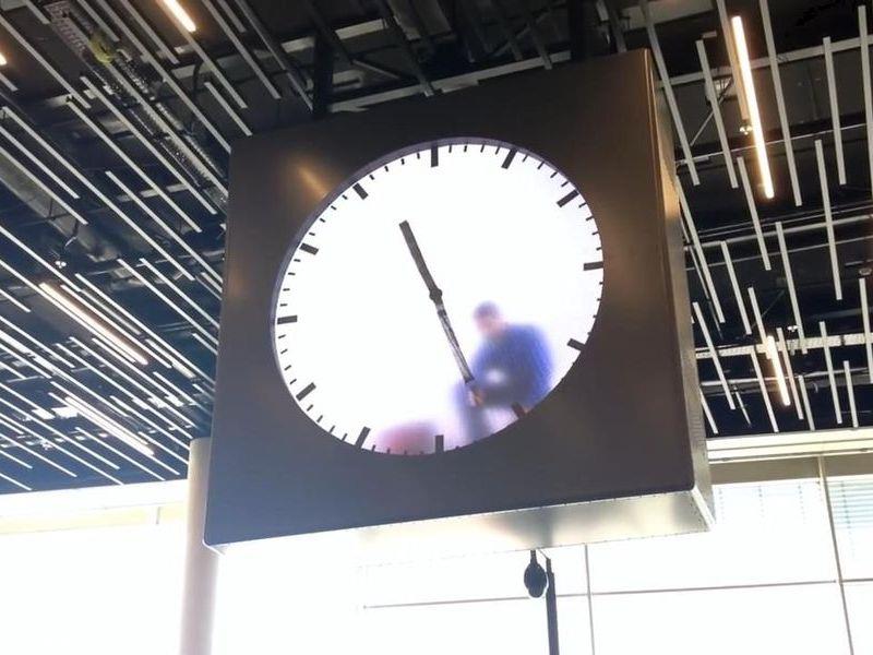 Schiphol clock, Marten Baas, video art installation that updates every minute