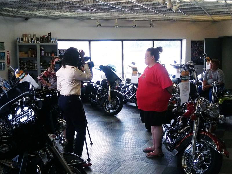 たまたまバイクショップでフィル君がイジメに遭っていることを聞いた女性が、友人のバイク乗りに相談しました。