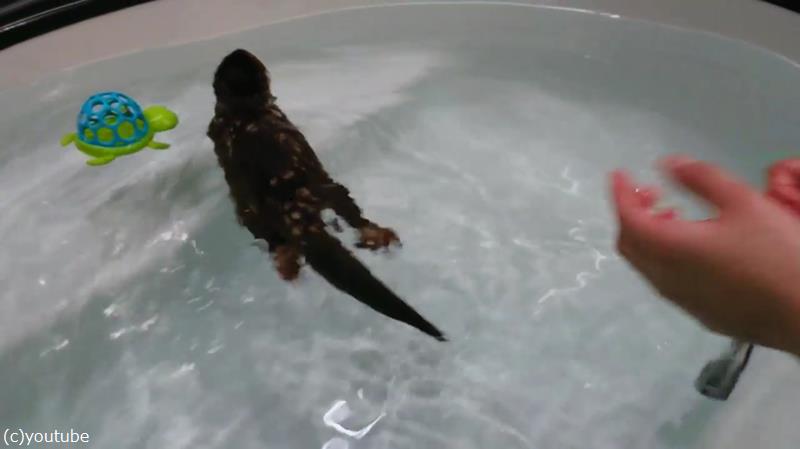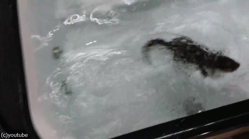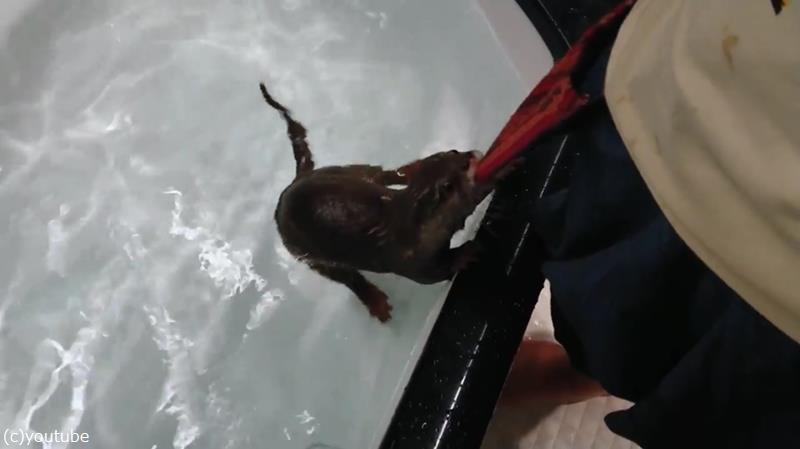 初めてのお風呂を怖がるカワウソ…本能が目覚める(動画)