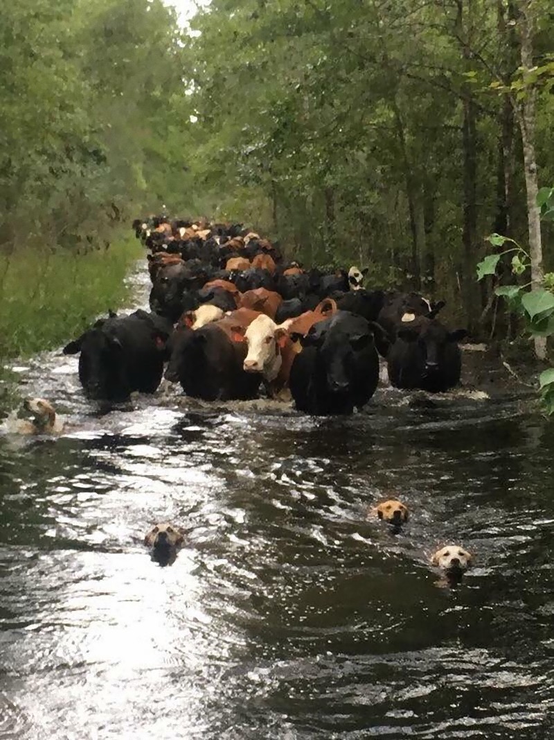 勇敢な犬たちが洪水の中を泳いで…牛たちを安全な場所へ導く