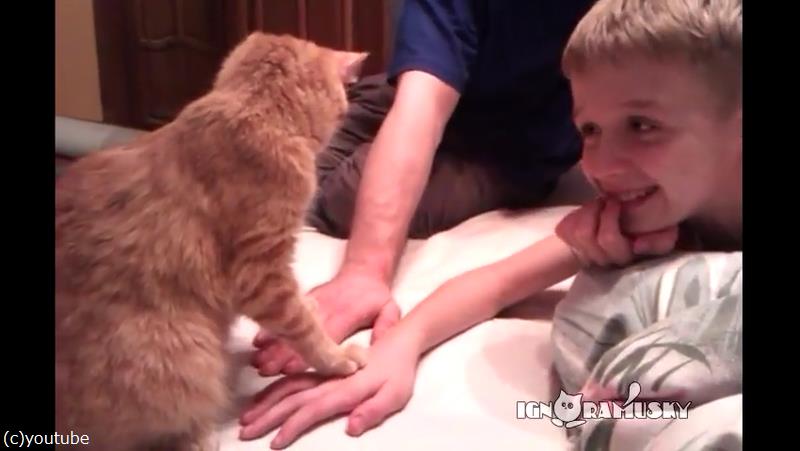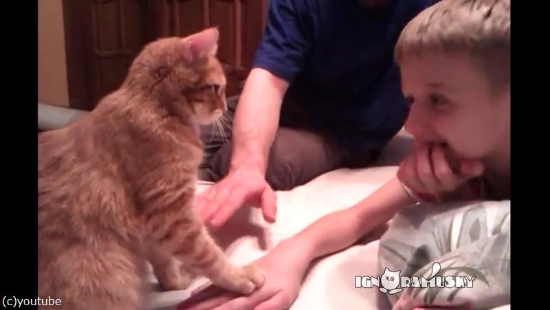 「お手手はここニャ!」手の置き場所に厳しい猫(動画)
