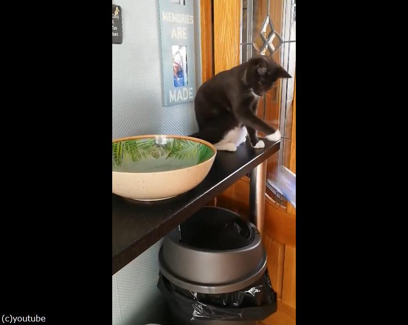 得意のパンチで素早く落とす猫。