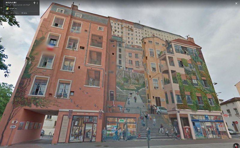 こちらはフランスのリヨンのカヌット通り。右の建物に「ある工夫」を施したことにより、地域のゴミのポイ捨ては減り、治安まで向上したとのことです。