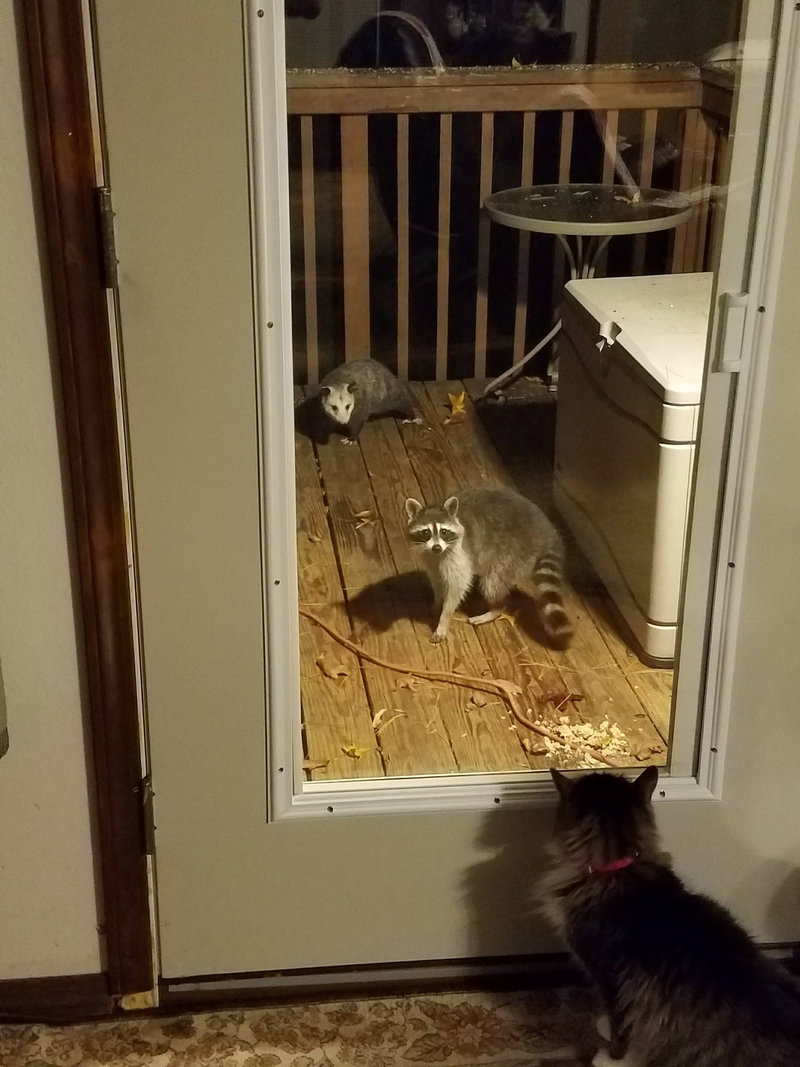 ↑(投稿者)ポッサムだよ。2匹のポッサムと3匹のアライグマが裏のデッキを毎晩訪ねてくる。