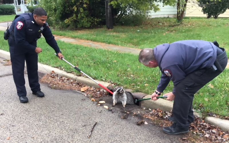 太りすぎのアライグマ、お腹が排水溝に引っかかり「助けてー!」→警官が救助