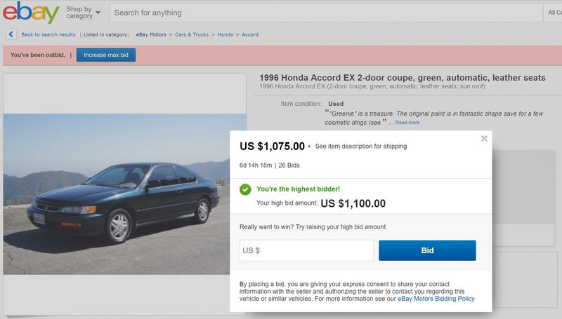 (1996 Honda Accord EX 2-door coupe, green, automatic, leather seats | eBay)