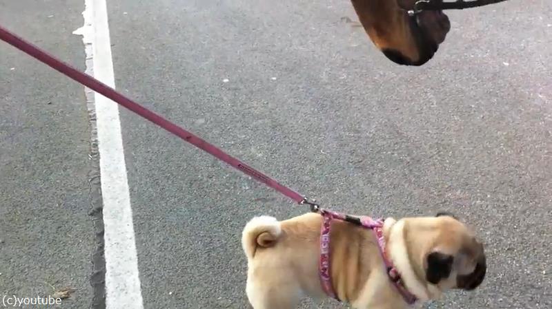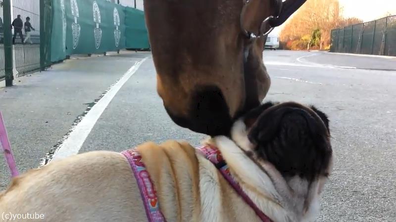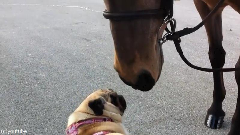 「パグと馬が…友達になる瞬間を見ちゃった!」(動画)