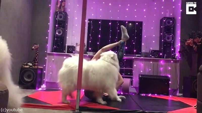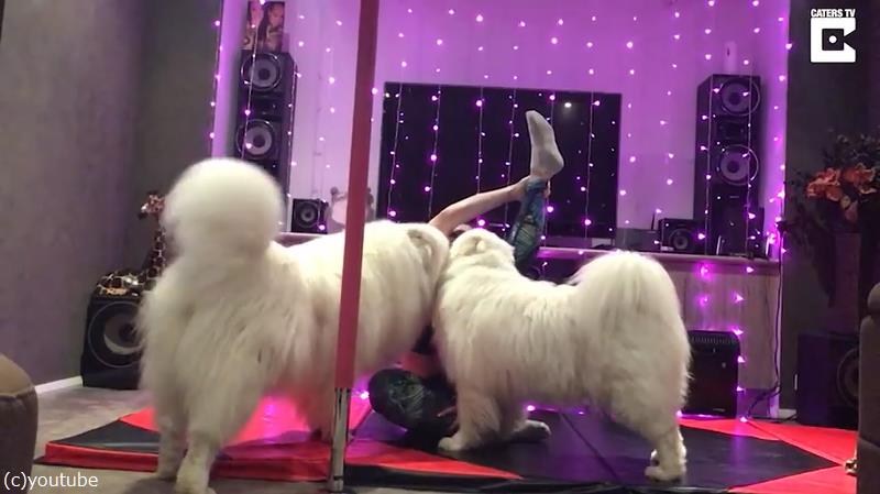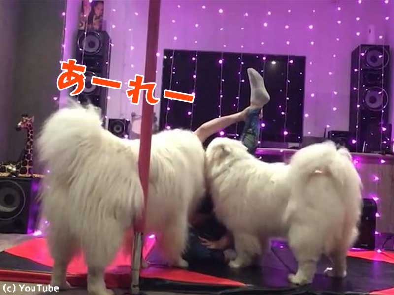 とうとうヨガをあきらめ、サモエドとスキンシップ。これはこれで幸せそうな飼い主さんなのでした。