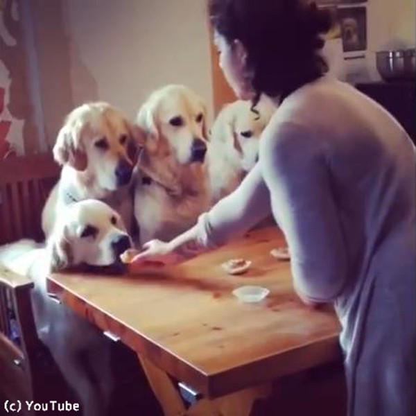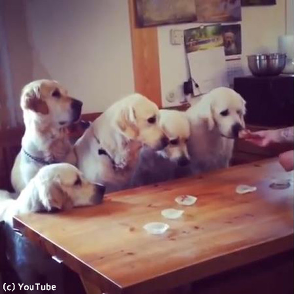 おやつの順番を守る犬たち…なんてお行儀がいいの!(動画)