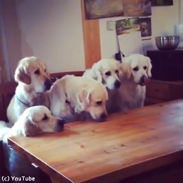 ところが、こちらの5匹のゴールデン・レトリーバーはとってもお行儀が良く、絶賛の声が多く寄せられていました。