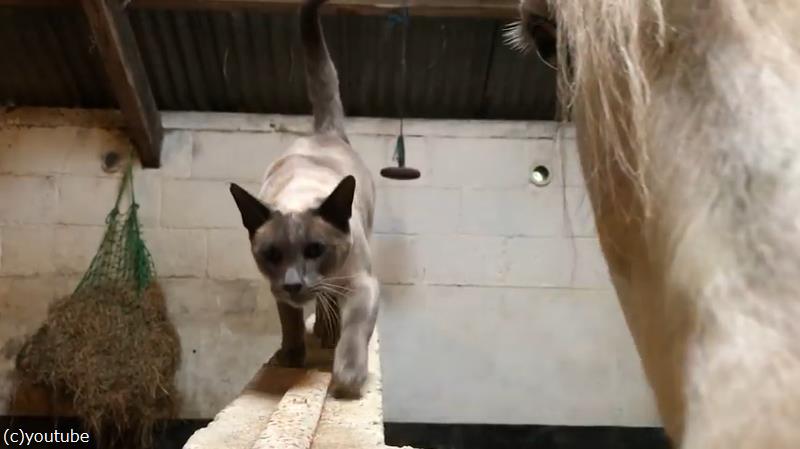 厩舎(きゅうしゃ)の塀の上を歩き、向かった先は……。