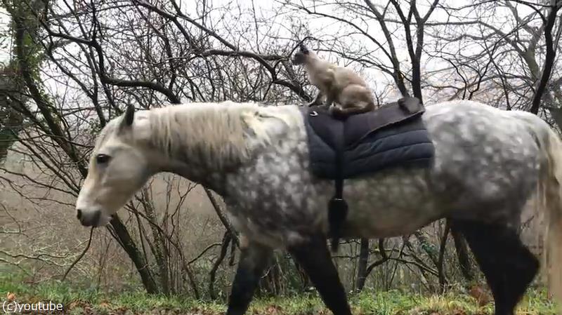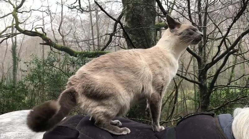 なんて高貴な猫なの…優雅に乗馬を楽しむ(動画)