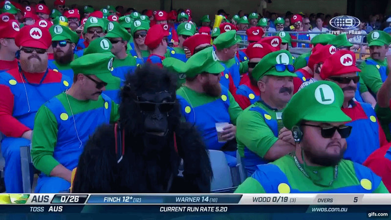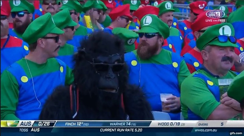 ↑クリケットのイベント。オーストラリアでは人気のスポーツだ。そして大きな集団がその日のためにコスプレしている。理由は不明。
