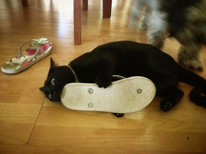 「ハンマーで作業中だけど…」猫が横でピッタリ寄り添ってくれる(動画)
