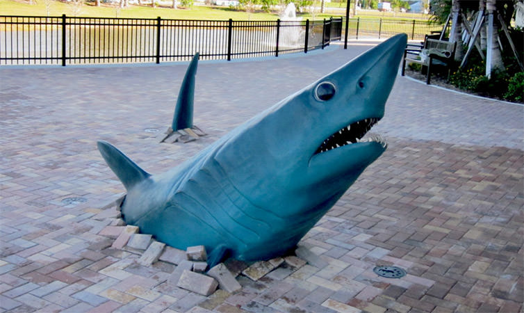 ●岩にペイントされたサメだとわかっちゃいるが、それでも恐怖だよ。