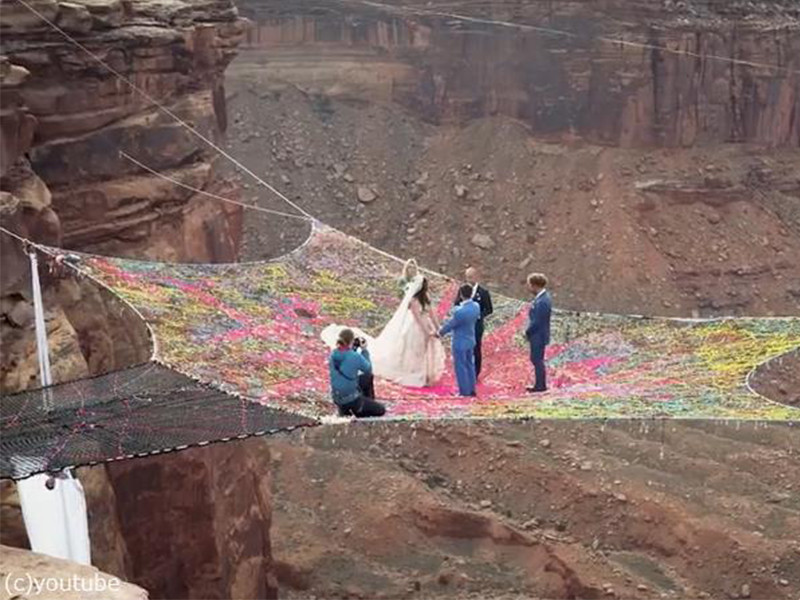 崖を使って綱渡りやパラグライダー、ヨガなどを楽しむイベントだったそうですが、まさかここで式まで挙げてしまうとは……相当思い出深い場所だったのでしょうね。