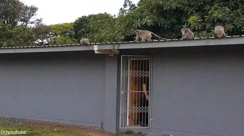 ドアを伝って壁を登るも、屋根のひさしで手間取っていたら……。