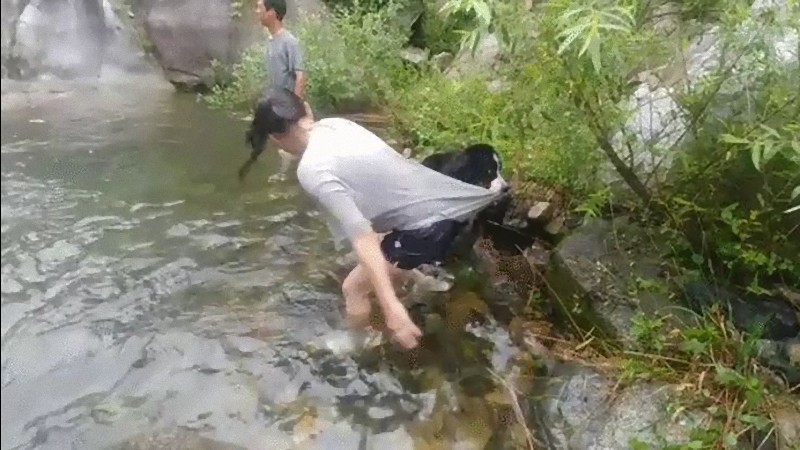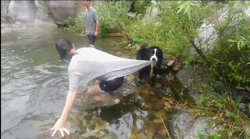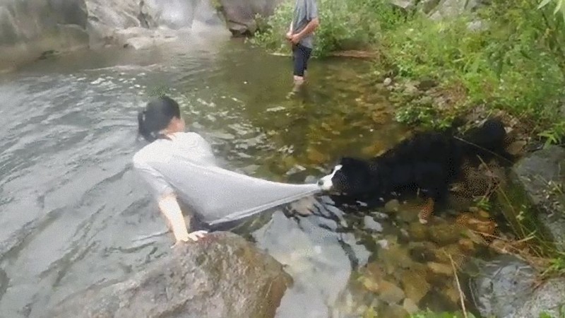 「どうしよう、犬が川遊びをさせてくれないの…」危険を察知して助けようとする