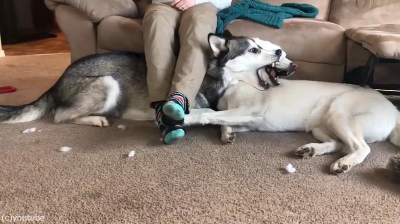 今回の勝負は黒ハスキーの勝利となったようです。