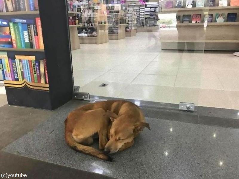 外でその犬に気づいた学生が、本を返しにレジまでやって来ました。