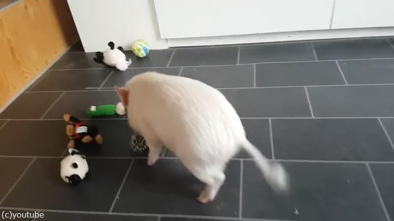 「ドリブルしてる!?」サッカーボールと友達な猫