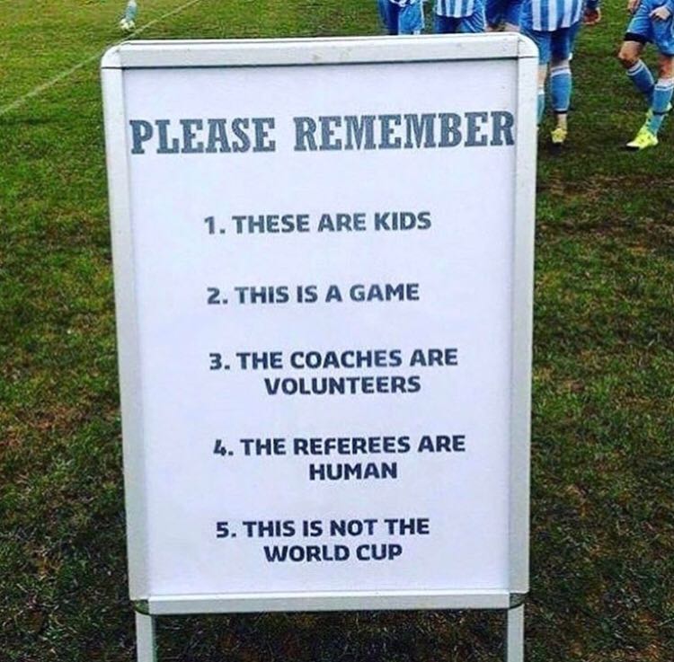 ●この看板がそこら中にあればいいのにと思うよ。中学生のサッカーの審判を数週間前にしたけど、保護者を追い出さなければいけなかった。