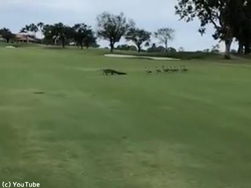 ゴルフ場でガチョウの群れを引き連れる「あの生き物」にびっくり!(動画)
