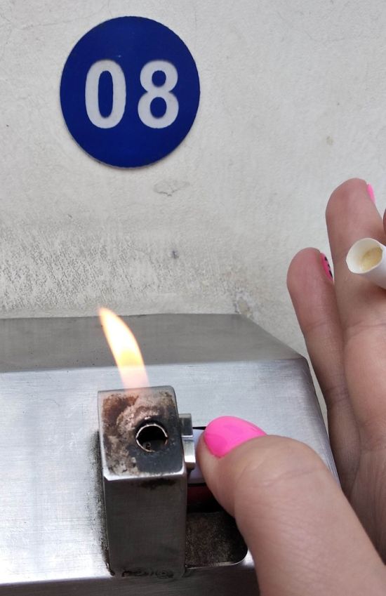 一説では上海万博の頃に、ライターやマッチの持込みが厳しくなり、そのため喫煙所に着火設備が必要になったとのこと。