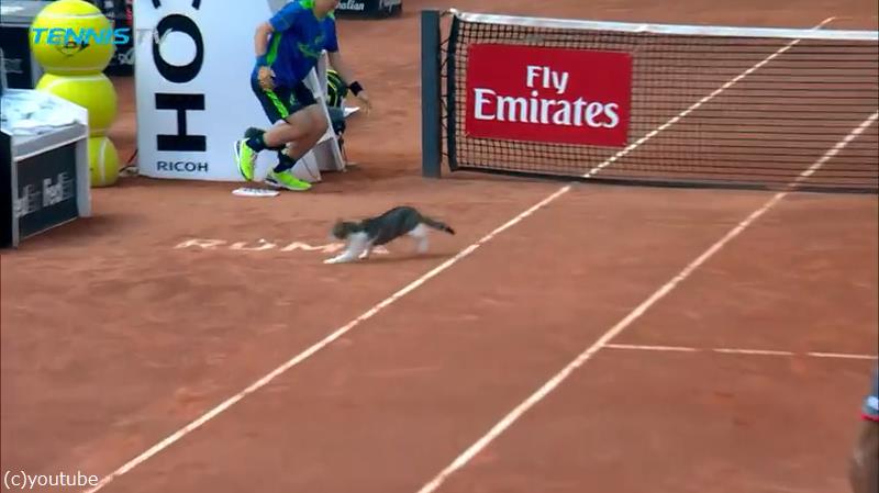 Cat invades tennis court, nearly gets hit! | Rome 2018 - YouTube
