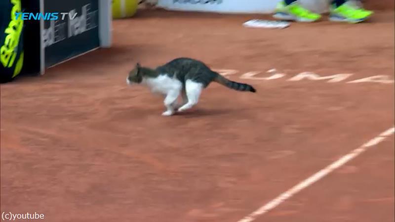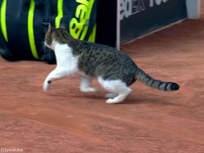 猫がテニスの試合に乱入した…コートを横切る素早い影(動画)