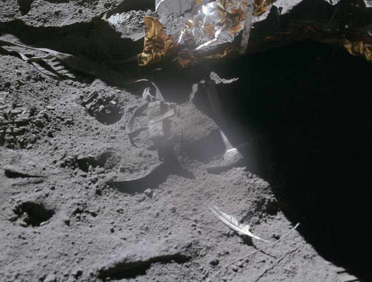 アポロ16号のチャールズ・デューク乗組員が置いてきたもの。紫外線により劣化している可能性あり。