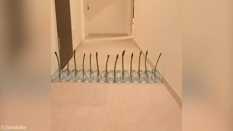 「越えられない!?」アスパラガスと犬の対決(動画)