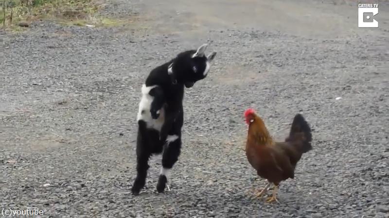 赤ちゃんヤギがニワトリにバトルを挑む…かわいい世界!(動画)