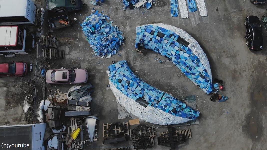 ベルギー北西部のブルージュで、海から引き揚げられた5トンのプラスチックのゴミを材料に、高さ38フィート(約12m)の巨大モニュメントが作られました。