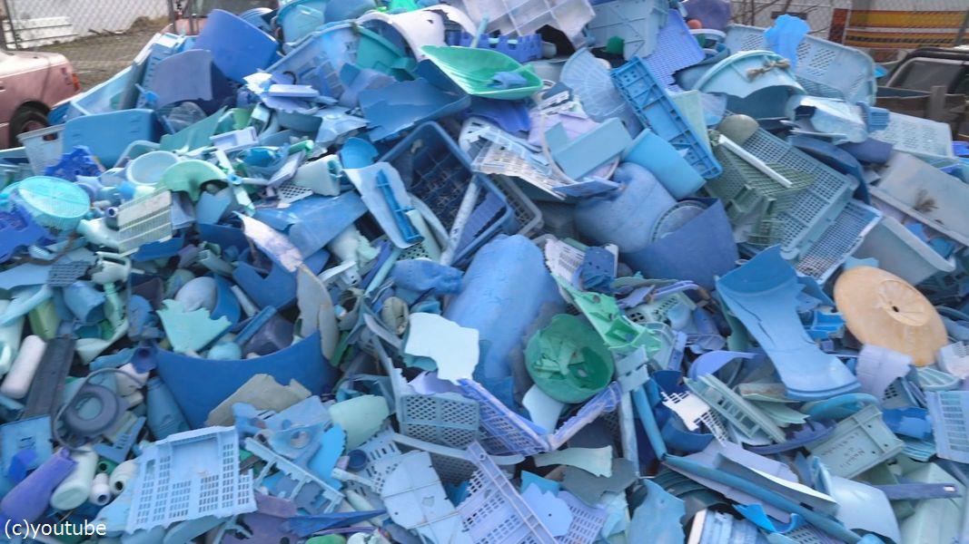 近づいてみると、プラスチックごみの塊なことがわかります。日本のゴミも混じっていますね。
