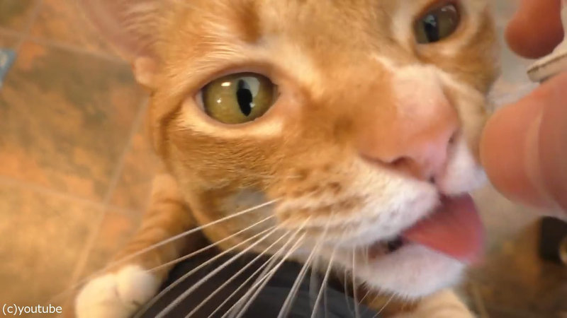 ホイップクリームが大好きな猫の「ちょうだい」アピールが止まらない(動画)