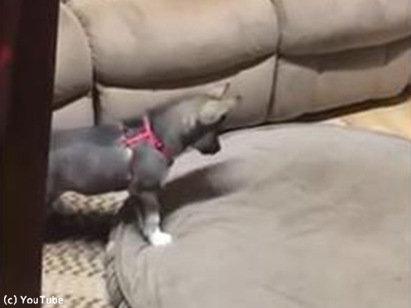 ハスキー犬の赤ちゃん…自分の影と戦う(動画)