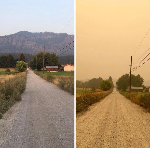↑モンタナ州からバンクーバーまで1100kmを運転したが、ずっとこんな感じだった。1度も煙は消えていない。